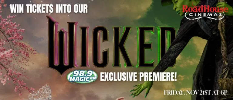 98.9 Magic FM is teaming up with our favorite movie theater, Roadhouse Cinemas, to bring you the most magical night of the year, the Wicked: For Good premiere! Step into Oz with themed drinks, costumed actors, photo ops, and a night that's bound to defy gravity!