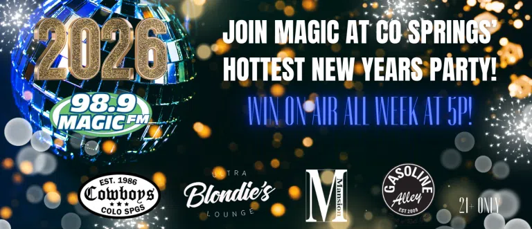 Get your name on the list for Colorado Spring's hottest New Year's celebration: the Tejon Street Block Party! Listen to win at 5p all week and fill out the form below to join Magic in ringing in the New Year like never before with access to ALL of Colorado Springs' hottest clubs- Cowboys, The Mansion, Blondies, Gasolin…